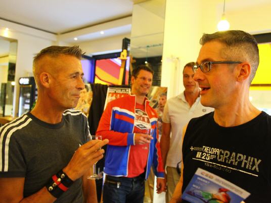 Ort: ROMEO UND ROMEO – Motzstraße 20 (Ecke Eisenacherstraße) 10777 Berlin - Die Ausstellung ist auch zum schwulen Straßenfest und dem CSD in Berlin geöffnet. - Zu wichtigen Spielen macht ROMEO und ROMEO natürlich auch Public Viwing!