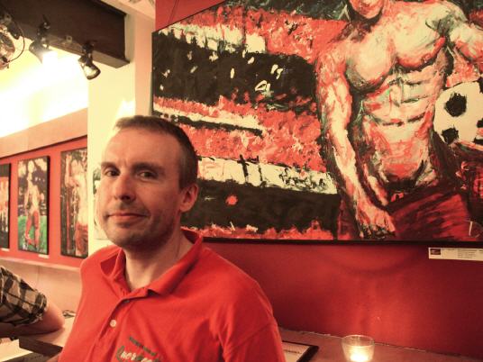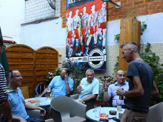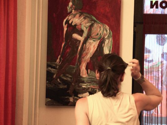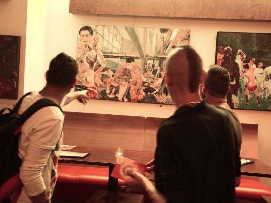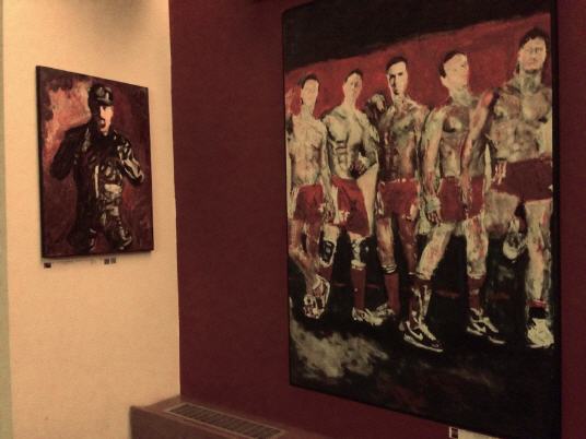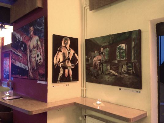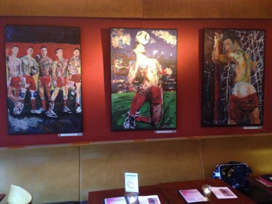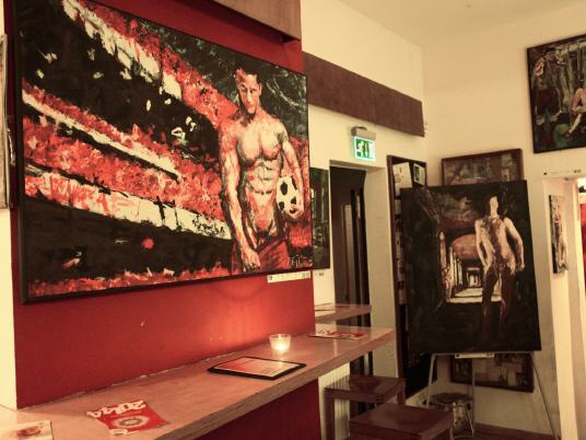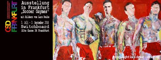 Lars Deike , born in Konstanz, studying photography in Los Angeles, Berlin City field . The artist shows in his latest exhibition, which is currently on display in the café ROMEO ROMEO & Scenes from the football sport. Venues are the Stadium, the playing field - but also the changing cabins. With his paintings (acrylic on canvas) Lars Deike would like to draw attention to the homophobia in football. Lars Deike would provoke aware of his pictures . He leads us to an unusual fetish gay , male sexuality : Leather, Rubber, Skins , or even complete Snax scenes can be reflected in his paintings. He succeeds in that his pictures despite thematic provocation are always subject to an aesthetic claim , are never offensive and the individual is the focus of his work behind the facade of superficial sexuality. "
