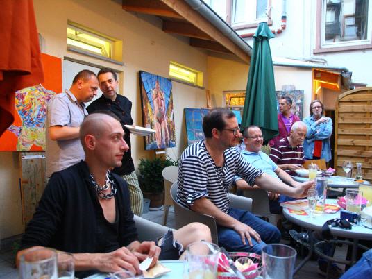 The switch Culture, moderated by Ralf Döblitz and Hubert E. , welcomes an artist from Berlin. Following the opening follows an erotic reading and as always , there are our delicious hessen eat by hand , Dirk and Christian .