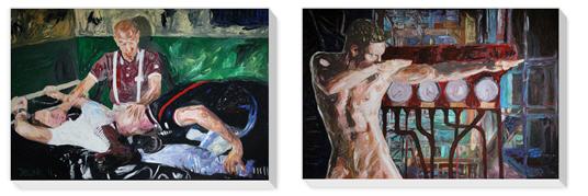 Zur Fußball Weltmeisterschaft 2014 in Brasilien habe ich eine Serie zum Thema "Gemeinsam gegen Homophobie im Fußball" gemalt - Fußball, Erotik und Sex - Haut, Muskeln, Spielfeld, Umkleidekabiene und Locker.