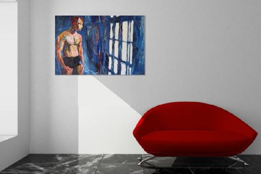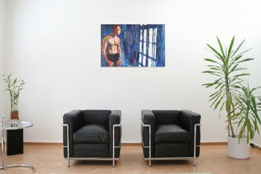 Hier findest Du Gemälde von Männern in verschiedenen Grösßen. Körper - Akt - Kunst - Durch Klicken auf die Bilder erhältst Du eine große Ansicht, mit zusätzlicher "zoom"- Funktion für eine detaillierte Darstellung. Natürlich werden hier im öffentlichen Bereich nur eine kleine Anzahl von Gemälden gezeigt und ausgestellt. Wenn Du Interesse an mehr Gemälden hast - dann setze Dich bitte mit uns über das Kontakt-Formular in Verbindung. Alle Bilder sind vom Künstler signiert und werden mit einem Echtheits-Zertifikat ausgestattet.