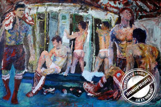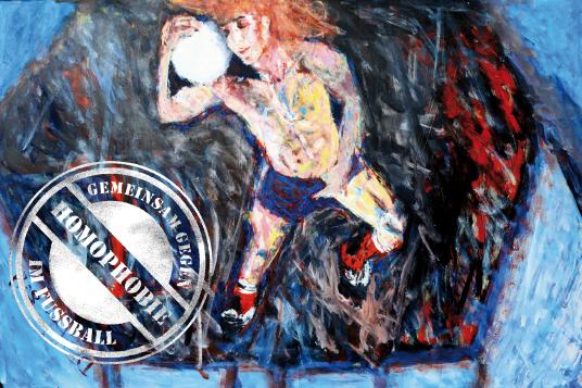 Gemälde Fußball WM - gemeinsam gegen Homophobie