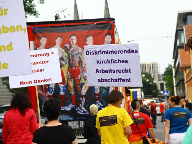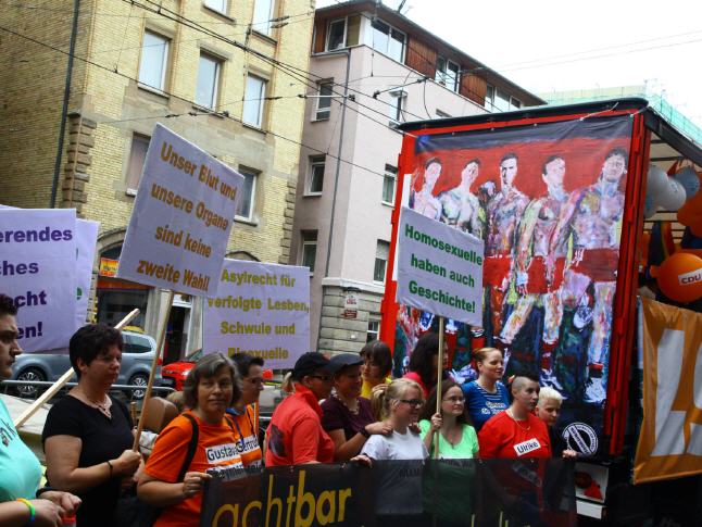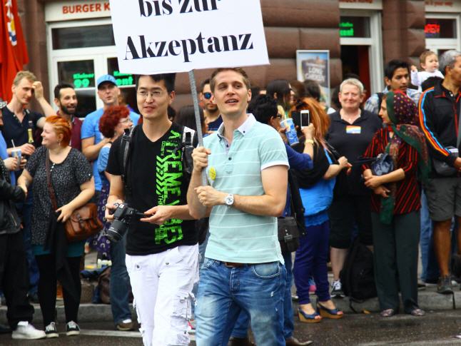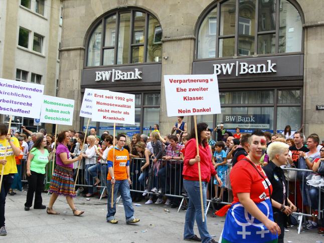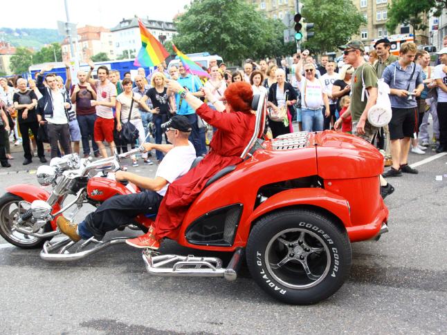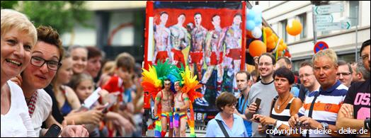 With the 18th CSD political parade on the Saturday (26.07.) Attracted more than 3,500 participating demonstrators in a total of 67 formations peacefully through downtown Stuttgart. The political demonstration by lesbian, gay, bisexual, transsexual, transgender, intersex and queer people (LSBTTIQ) attracted about 220,000 viewers according to the police end to the curb along the parade route from Marienplatz to Palace Square. As part of Southern Germany's biggest march of its kind located LSBTTIQ people sat, one flanked by many heterosexual Supporting, for full legal equality and acceptance of diversity, both sexual identities and gender. On the many posters, banners (also from LARS DEIKE) and banners within the CSD demo participants themed urgent messages. They secured their displeasure with existing discrimination loud and clear air. So the marriage was vehemently opening just as important as the common law of adoption. But even that coming out in the family and at work was taken up again and again. Of course, another focus was placed on education and awareness in schools and in society through the months-long discussion about the new Baden-Württemberg education plan.