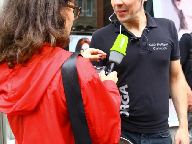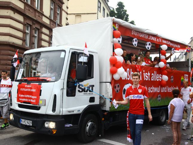 Mit der 18. CSD Polit-Parade am gestrigen Samstag (26.07.) zogen weit mehr als 3.500 teilnehmende Demonstrantinnen und Demonstranten in insgesamt 67 Formationen friedlich durch Stuttgarts Innenstadt. Die politische Demonstration von lesbischen, schwulen, bisexuellen, transsexuellen, transgender, intersexuellen und queeren Menschen (LSBTTIQ) lockte laut Polizeiangaben etwa 220.000 Zuschauende an den Straßenrand entlang der Paradestrecke von Marienplatz bis Schlossplatz. Im Rahmen von Süddeutschlands größtem Marsch seiner Art setzten sich LSBTTIQ-Menschen, flankiert von vielen heterosexuellen Unterstützenden, für die vollständige rechtliche Gleichberechtigung sowie die Akzeptanz von Vielfalt sowohl sexueller Identitäten als auch von Geschlecht ein. Auf den vielfältigen Plakaten, Bannern und Transparenten innerhalb der CSD-Demo thematisierten die Teilnehmenden drängende Botschaften. Sie verschafften ihrem Unmut über vorhandene Diskriminierungen lautstark und deutlich Luft. So wurde vehement die Eheöffnung ebenso wie das gemeinsame Adoptionsrecht gefordert. Aber auch das Coming Out in der Familie und am Arbeitsplatz wurde immer wieder aufgegriffen. Natürlich wurde durch die monatelange Diskussion um den neuen baden-württembergischen Bildungsplan ein weiterer Fokus auf die Aufklärung und Sensibilisierung an Schulen und in der Gesellschaft gelegt.
