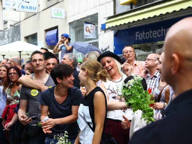 At the final rally at the Palace Square was Christoph Michl, CSD board member and head of the whole festival slogan: "Down with special rights! We want and need to fight together to ensure that the same is finally treated equally and also so named. Therefore, the opening of the marriage and the joint adoption rights for lesbian and gay couples our next big goals are "Michl added:".. Moreover, it is necessary to tilt the already unconstitutional Transsexuals Act and the discriminatory general blood donation ban on homosexual and bisexual men " Ute Vogt (MP, SPD) spoke on behalf of Dr. Nils Schmid, who took over the patronage for CSD Stuttgart as deputy prime minister and SPD regional chairman. They brought personal greetings, praised this year's CSD motto and pointed in her speech to the difficult situation of LSBTTIQ-people in other countries out. "For these people we have here today also make an uproar," Vogt said.