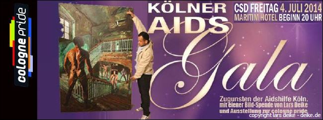 Auf der AIDS-GALA im Kölner Maritim Hotel, Heumarkt 20, 50667 Köln, wird das größte Bild „Nudes at the staircase – Treppenakt“ http://www.deike.de/paintings/gemaelde-nach-groessen/gemaelde-gross-hoch/2630-nudes-at-staircase---treppenakt.php zu Gunsten der Aidshilfe Köln in der Tombola als einer der Haupt-Preise verlost. Das vom Künstler handsignierte limitierte Werk hat eine Größe von 2,40 Meter x 1,40 Meter. https://www.facebook.com/photo.php?fbid=433569480121543&set=a.433565623455262.1073741848.100004054849572&type=3&theater (Leinwand auf 4cm Gallerie-Holzrahmen). Jeder kann an der Tombola teilnehmen – Lose gibt es schon ab 1,00 Euro. Ich drücke Euch die Daumen! Gleichzeitig findet meine CSD Ausstellung im surprise, Friesenwall 20 – 22 (Nähe Rudolphplatz) 50672 Köln statt. Vernissage ist am 5. Juli um 19 Uhr. Die Ausstellung dauert bis zum 03. September 2014. Ich freue mich auf Euer Kommen.