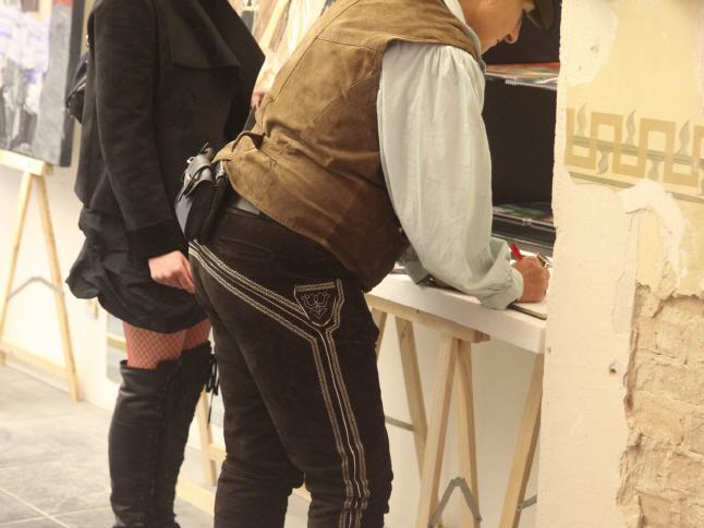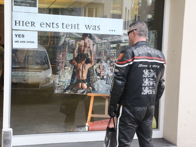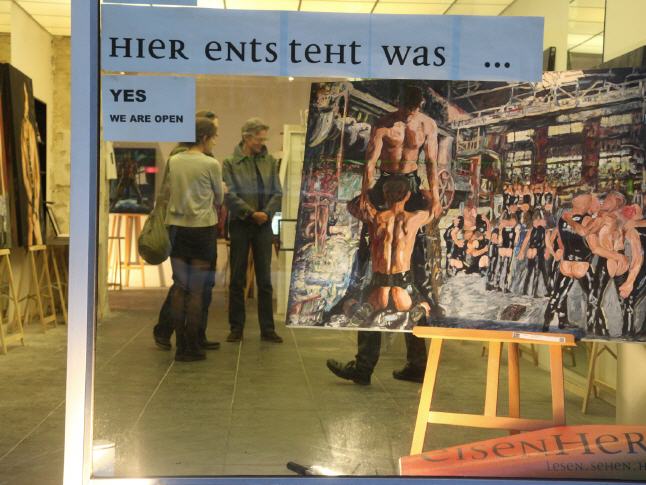Neben dem Thema Fetisch, Sex und Erotik steht aber auch der männliche Körper - jung, oder alt im Mittelpunkt der Ausstellung. Der Künstler ist zur Ausstellungseröffnung anwesend. Siehe auch unter Presse oder hier der Artikel auch hier und hier