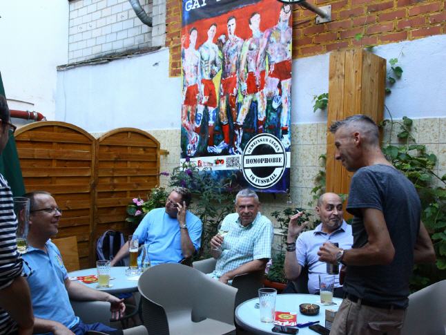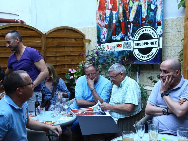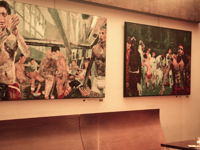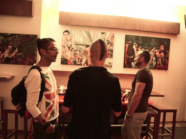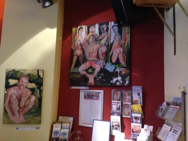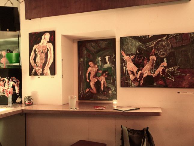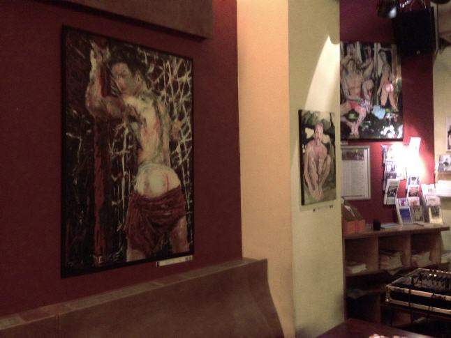 Lars Deike , born in Konstanz, studying photography in Los Angeles, Berlin City field . The artist shows in his latest exhibition, which is currently on display in the café ROMEO ROMEO & Scenes from the football sport. Venues are the Stadium, the playing field - but also the changing cabins. With his paintings (acrylic on canvas) Lars Deike would like to draw attention to the homophobia in football. Lars Deike would provoke aware of his pictures . He leads us to an unusual fetish gay , male sexuality : Leather, Rubber, Skins , or even complete Snax scenes can be reflected in his paintings. He succeeds in that his pictures despite thematic provocation are always subject to an aesthetic claim , are never offensive and the individual is the focus of his work behind the facade of superficial sexuality. "