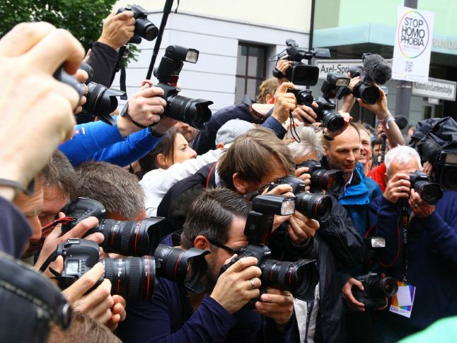 Ausstellung Oslo Europride 2014 im Rathaus, in dem sonst die Friedensnobelpreise verliehen werden.