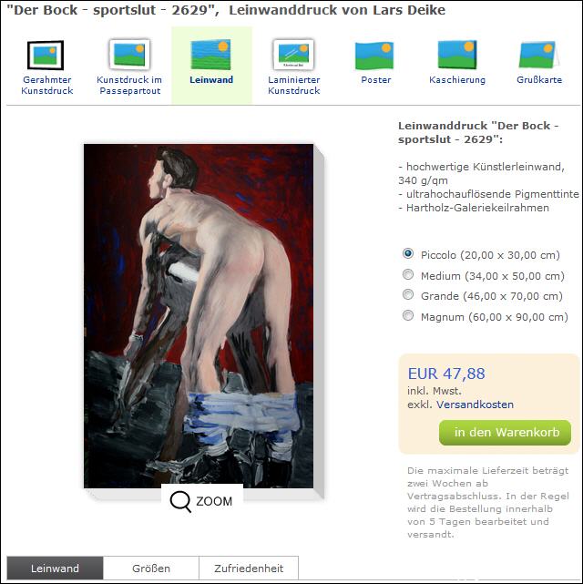 - Piccolo: (30 x 40 cm) ab 17,88 Euro - Medium (40 x 50 cm) ab 23,88 Euro - Grande (50 x 70 cm) ab 35,89 Euro - Magnum (70 x100 cm) ab 50,28 Euro